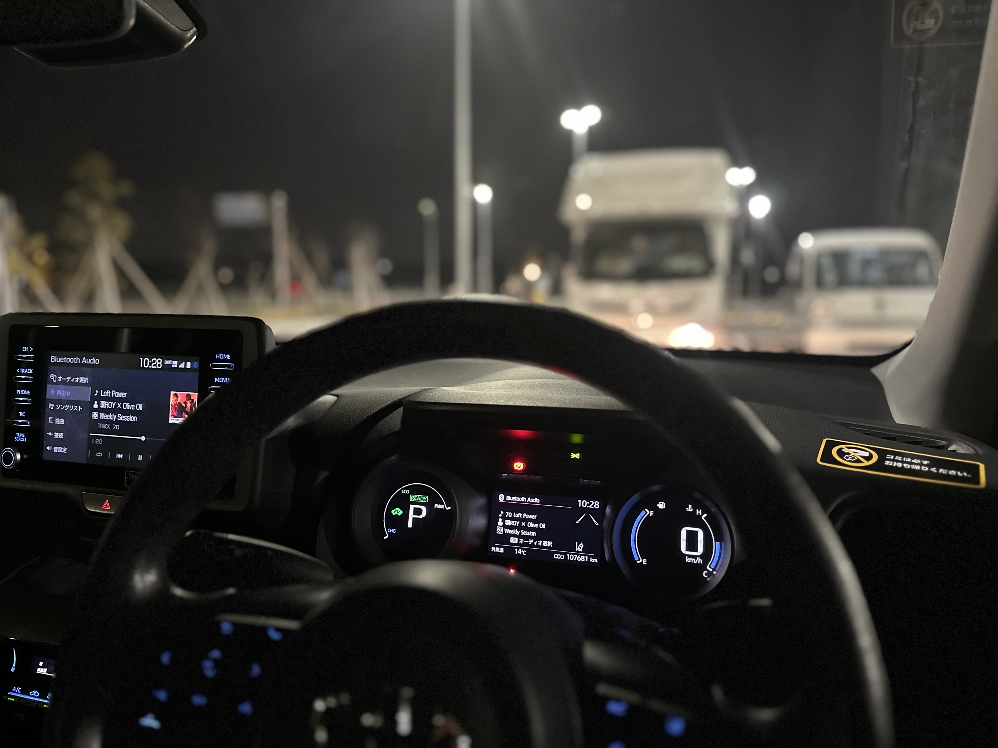 気付け湘南の駐車場で車中泊をしようとしている。